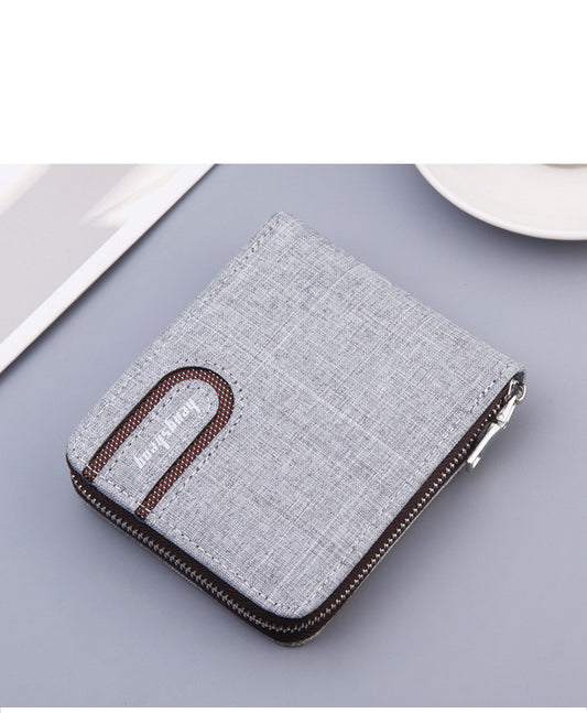 Men's Short Wallet Men Wallet Zipper Wallet Canvas Small Wallet Multi-function Multi-card Slot